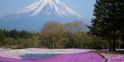 O Monte Fuji (Fuji-San) é a montanha mais alta do Japão (3.776m), com seu quase perfeito cone de cor entre lilás e acinzentado ou coberto de neve sobre as colinas e as nuvens, sua mudança de aparência pelas estações e as horas do dia e sua preeminência sobre a paisagem é um símbolo do Japão e está localizado como algo muito especial nos corações de todo o povo japonês. Fuji-San está inativo desde 1707 e o mesmo entrou em erupção pela primeira vez entre 8 mil e 10 mil anos atrás. Nas encostas superiores não há vegetação ou córregos e são feitas de cinzas vulcânicas soltas. Antigamente, era considerado tão sagrado que só era permitido escalar monges e peregrinos, e para as mulheres não se permitíam escalar até 1872. Ao pé do monte Fuji, cinco lagos formados por erupções destacam com os seguintes nomes: Lago Sai, Lago Motosu, Lago Shojin, Lago Yamanaka e Lago Kawaguchi, que é o mais acessível e explorado.