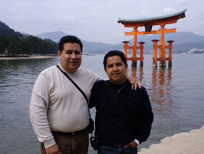 Hector y su hijo Erick vinieron desde Guadalajara, Mexico a disfrutar de Japon en la epoca de las Sakuras y aprovecharon para visitar tambien las Isla de Mijayima en Hiroshima aqui posando frente a la celebre “Torii Flotante”puerta de entrada del Santuario Itsukushima, proclamada por los japoneses como una de las tres vistas mas emblematicas del pais.