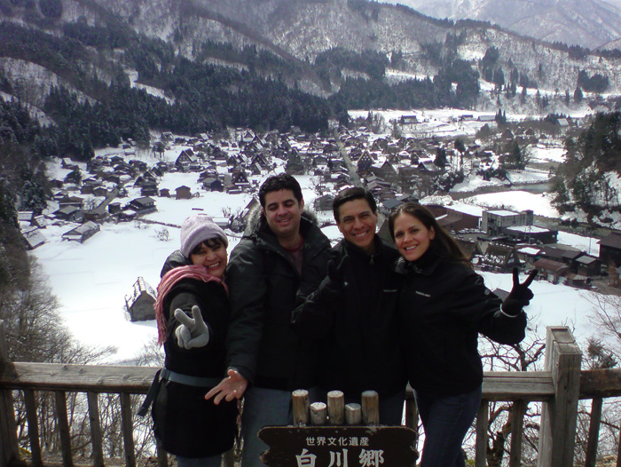 Desde Cancum, Mexico vinieron Cesar su esposa Era con sus amigos Francisco y Celia y estuvieron disfrutando de la nieve en Shirakawag