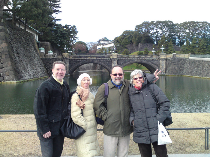 Emilio y Roberto ambos casados con las hermanas Maria y Estrella visitaron Japon en el invierno del 2012, se tomaron la tradicional foto en La plaza del Palacion Imperial y en su paseo a Hakone se divirtieron tocando el Taiko.