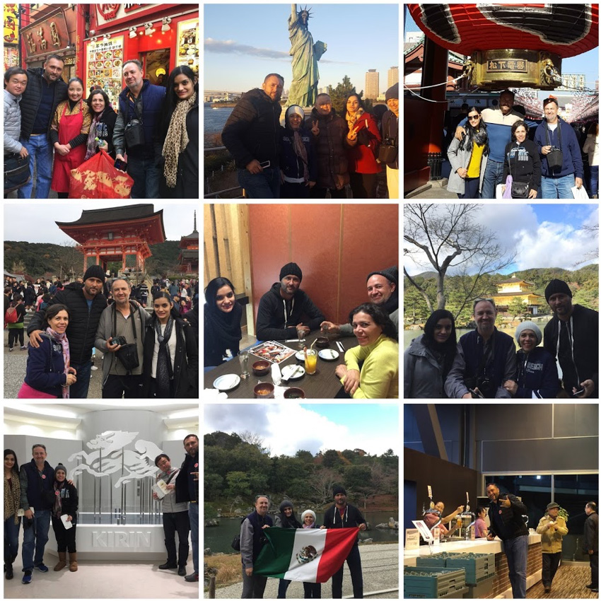 Los cuatro miembros del grupo Herralum de este año Karina, Felicitas, Jaime y Rogelio estuvieron muy contentos disfrutando de las bellezas de Japon y sintiéndose muy orgullosos de ser mexicanos ondearon su bandera en el Jardin del Templo Tenryuji en Kyoto, ademas por estar cercanas las fiestas navideñas brindaron con cerveza Kirin en la visita a la fabrica en Yokohama.